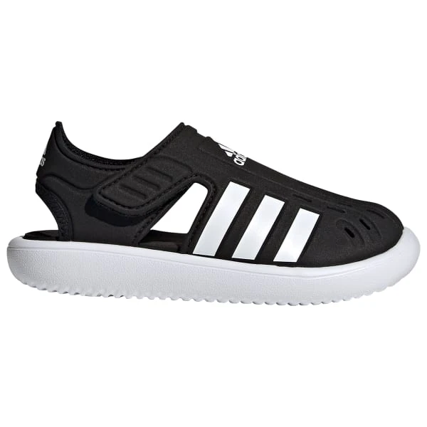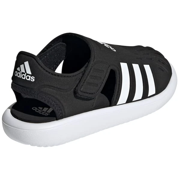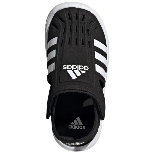 Camping and canoeing. Splashing and bubble blowing. Yup, it’s vacation time. The adjustable hook-and-loop wings on these kids’ adidas sandals create a snug fit, even when feet get wet. The closed front with quick-dry openings keep toes dry and safe from sharp objects that threaten to ruin the day.
