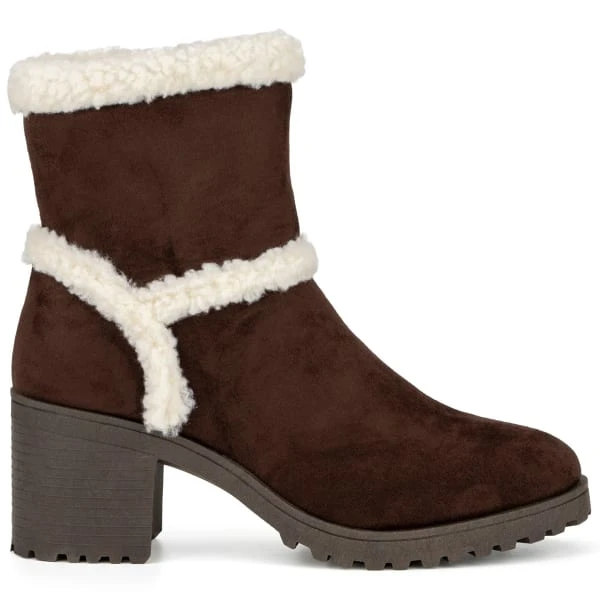 The Olivia Miller faux suede boot is a pull-on style with stacked heel. Perfectly pairs with jeans or slacks.
