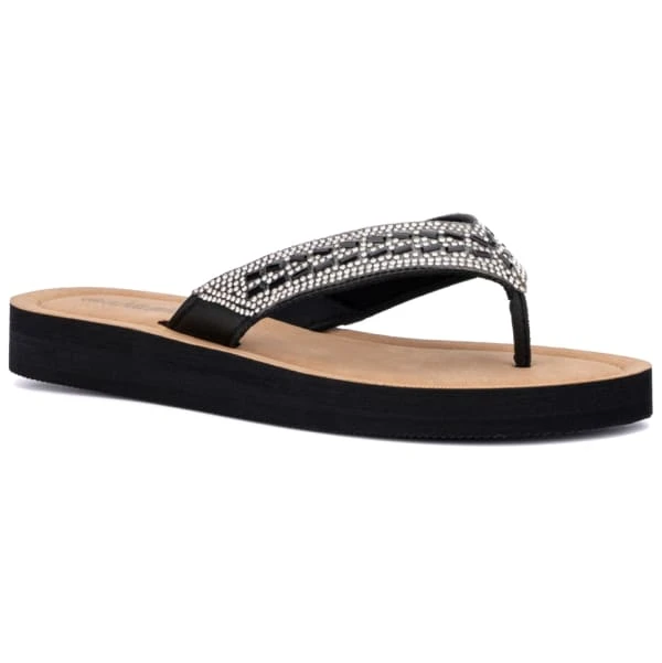 These Olivia Miller Sandals feature a fashionable upper and between-the-toe thong design.