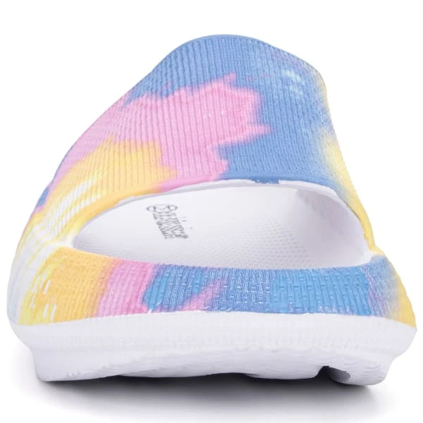 These Olivia Miller Slides feature a bright and colorful tye dye pattern in a slip on style.