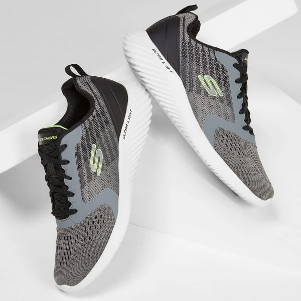 Jump the gap between flexible athletic comfort and sporty style with the Skechers Bounder – Verkona shoe. This lace-up athletic comfort sneaker features a mesh and synthetic upper with an Air-Cooled Memory Foam insole.