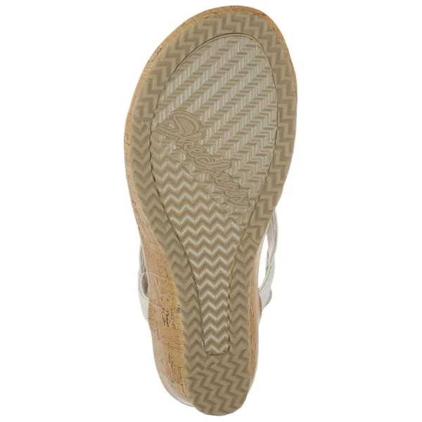 Accentuate your adorable style with warm weather comfort in the Skechers Cali Beverlee – Date Glam sandal. Smooth synthetic upper in a wedge heeled fashion ankle strap slide sandal with cork wedge heel, rhinestone designs and Luxe Foam footbed.