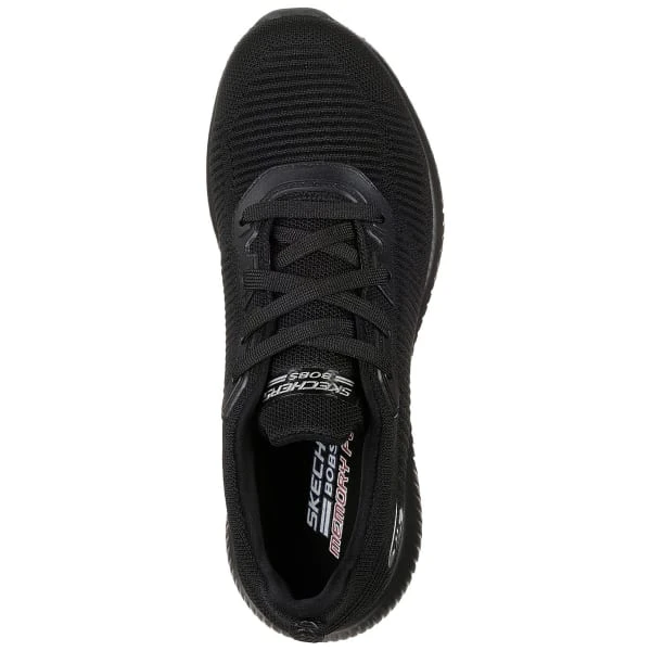 Always back up your claims in sporty style and total comfort with the SKECHERS Bobs Sport Squad – Tough Talk shoe. Soft woven knit fabric upper in a lace up fashion sneaker with synthetic overlays and Memory Foam insole.