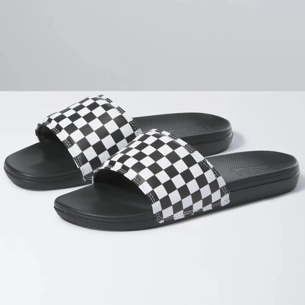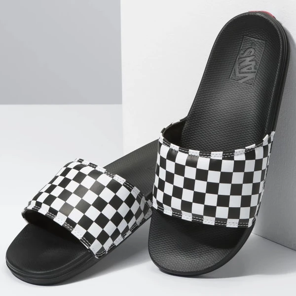 Slip into comfort with the Checkerboard La Costa Slide-On. Inspired by Vans’ classic vulcanized roots, this slide-on sandal features a synthetic nubuck strap with the iconic Vans checkerboard print and soft rubber and stretch textile linings. Our super-soft UltraCush footbeds include built in arch support, and the lightweight, flexible, and durable injected UltraCush Lite waffle outsoles are ready for all-day wear. It is made with water-based inks and glues.